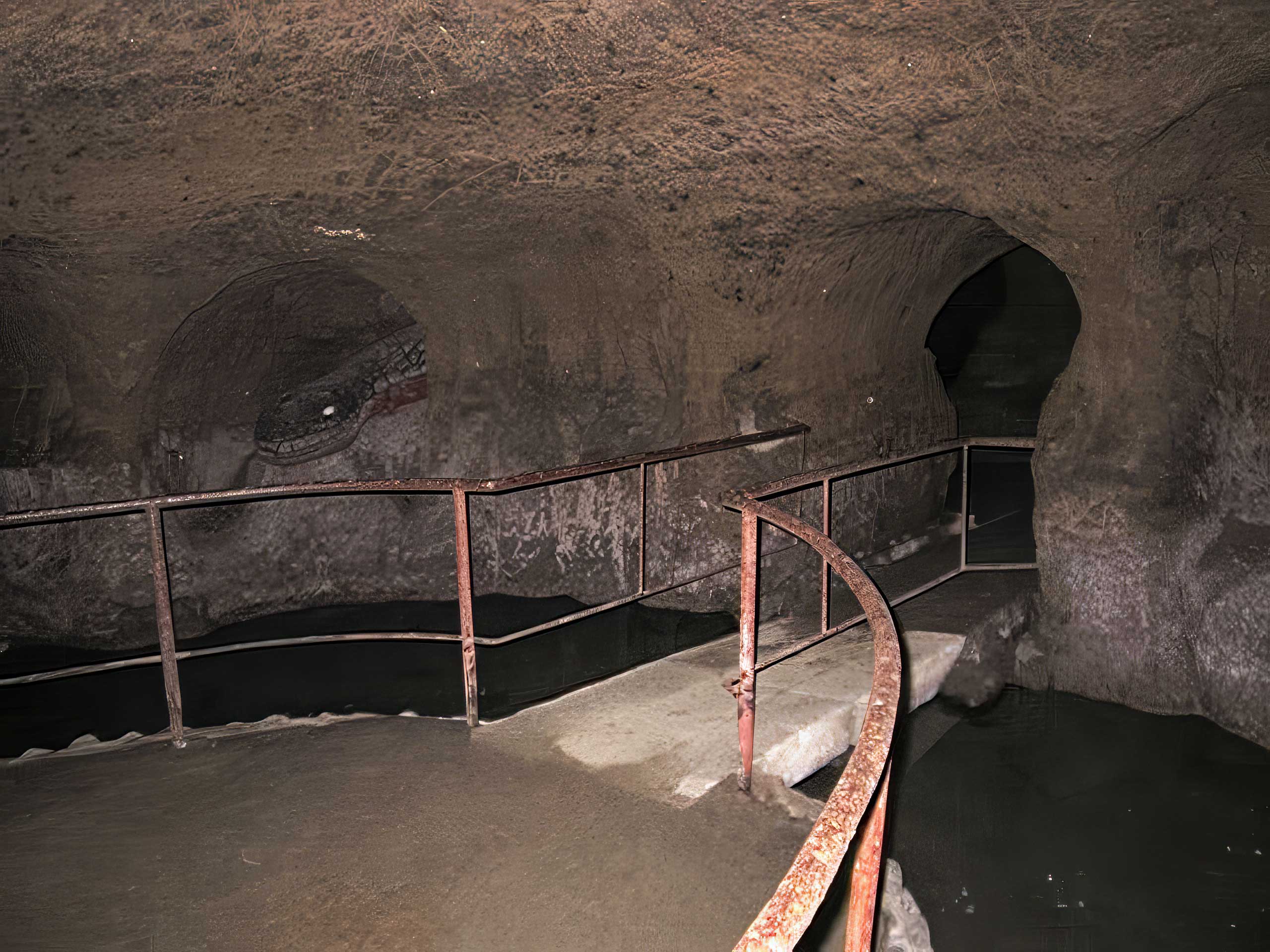 このあたりまで進むと、入口の光はまったくとどかない。