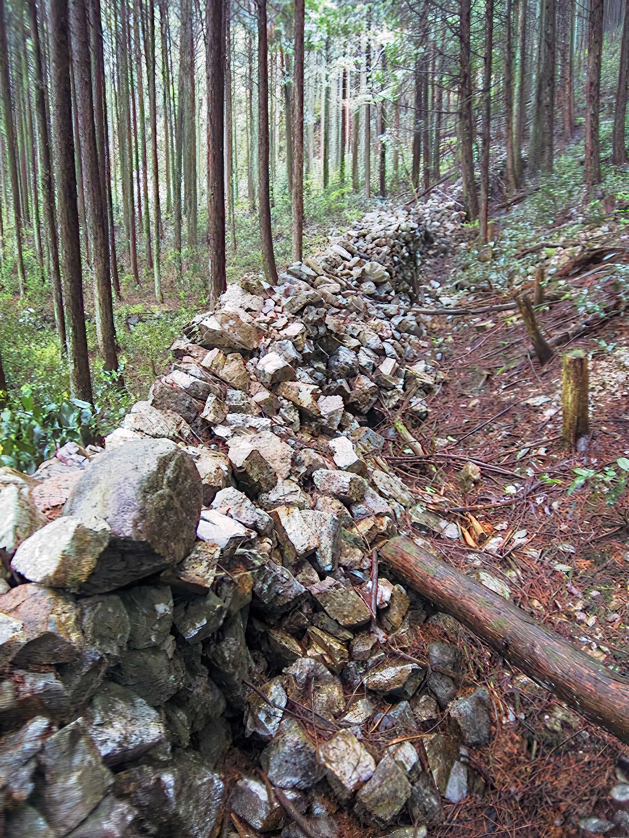 今は杉林になっているが、かつてはここでイノシシを防ぐとことが、それこそ生死にかかわる時代が確かにあったのだ。この石垣がどれだけの労力と年月をかけて築かれたのかは想像すらできない。私は圧倒されてしばし言葉を失ってしまった。