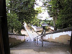 石門を通って参道を進むと石段がある。伽藍は町並みの背後の丘の上に建てられているのだ。