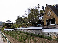 次なる目的地、安福寺を探して上下町内の県道を走っていると、丘の上に怪しい竜宮門を発見。