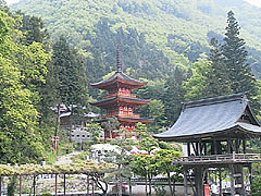 三重塔の裏には鎮守社があった。これも新しい建築なので、塔と一緒に山上から下ろしたものなのだろう。