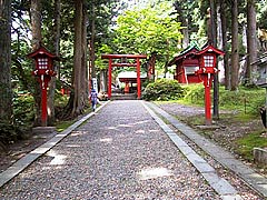 門前の駐車場に車を停め、砂利の敷かれた参道を進む。両側は杉林でおちついた雰囲気だ。