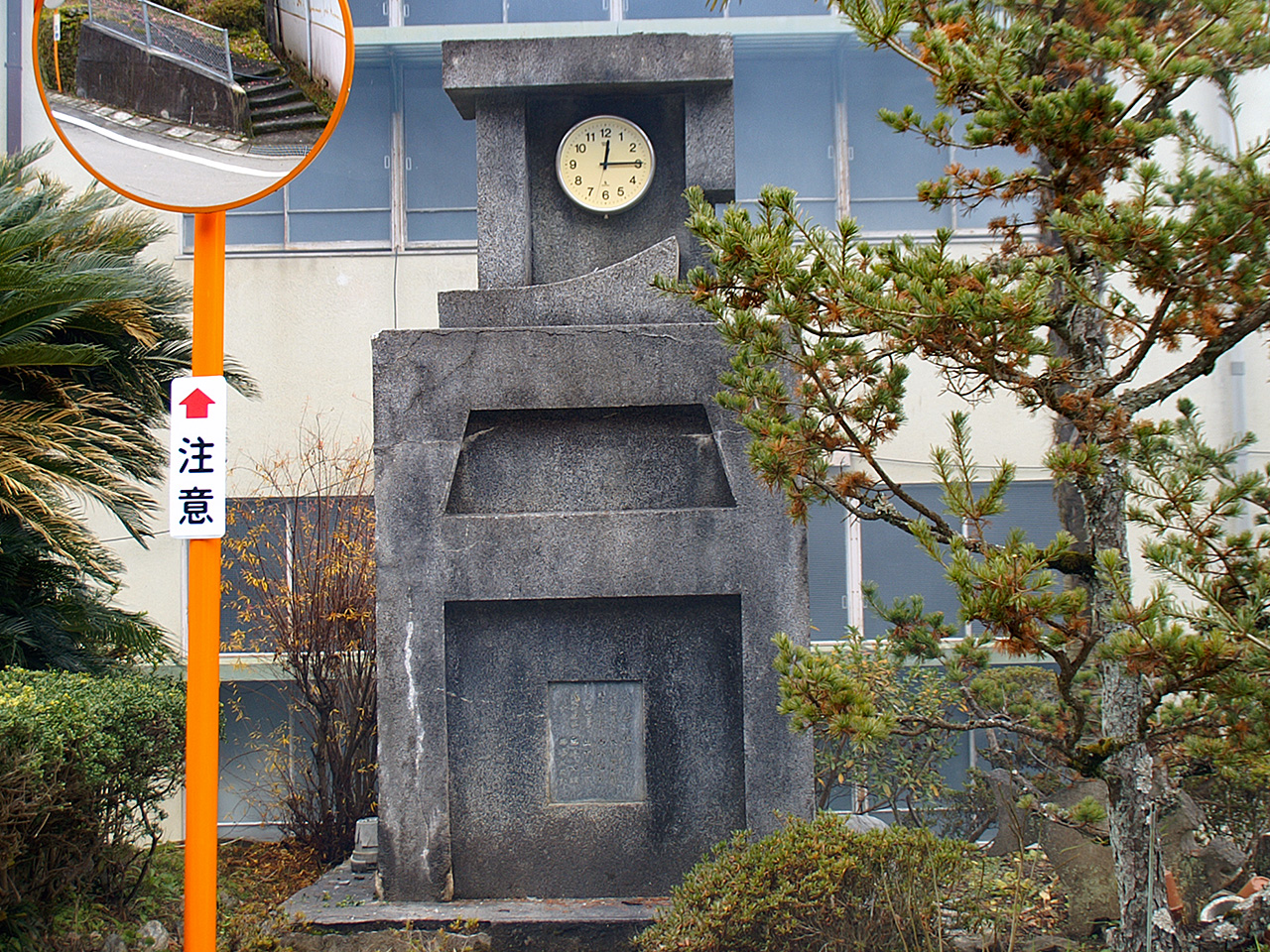 コンクリ洗い出し仕上げ、意匠的にはポストモダンっぽい前衛的な時計台だ。
