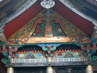 朱塗りを基調とした極彩建築というのは田舎の寺にもあったりするが、こういう黒を基調として金、青、緑を多用した極彩建築というのは、かなり限られる。建築意匠が悪い方向へ行く一歩手前で、贅沢の極致でなんとか踏みとどまったぎりぎりの美しさとでも言えばよいか。