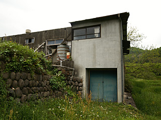 外部の石段を降りると貯桑場の入口に行ける。わざわざ軽トラを上段に乗りつけて、桑を運び降ろしたのだろうか。効率が悪そうだ。