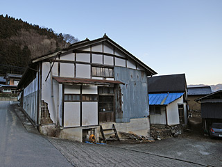 現在は、農家の倉庫として使われている。ガラス戸が多く中がよく見えるのだが、室は取り外されて大部屋の倉庫になってしまっていたので、外見のみ撮影。