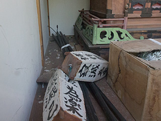 大きな蕨手がユニークな座棺輿がしまわれてあった。
