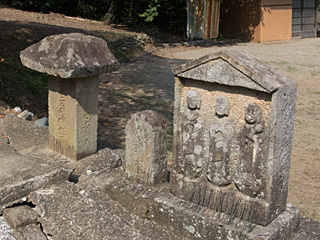 この三体は対になった石塔もあり、左右で六地蔵を形成している。
