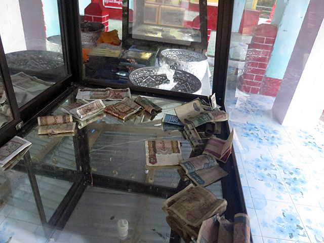 ミャンマーのお賽銭箱は中身が見えるようになっている。お布施額を煽るためだろう。