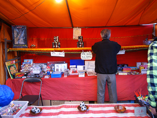 この日は約2時間歩き続けてすべての露店を確認し、たくさんの写真を撮ったが、全種類を紹介するには枚数が多すぎる。そこで、射幸系を中心として、あとは玩具とお菓子の店を紹介しようと思う。