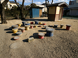 砂場の周囲や藤棚の回りにはにコンクリの壁があり、缶蹴り遊びをするのにとても具合がよかった。