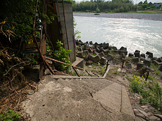 対岸を見ると、コンクリの基礎のようなものが見えていた。あれが対岸で鋼線を固定した場所だろうか。