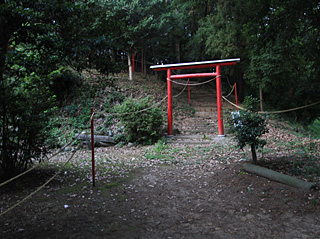 石段を登ったところに石灯籠があり、ちょっとした平坦な場所がある。もしかするとここには以前、なにか社殿か堂宇があったのではないかと思わせる場所だ。