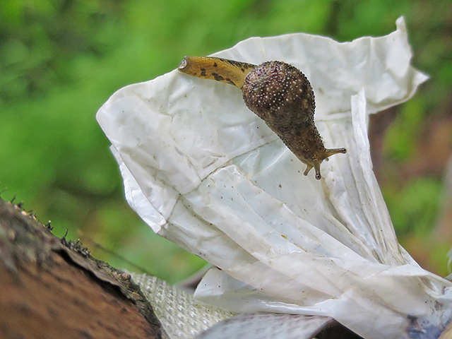 なにしろ地面もどこも濡れているので、たくさんの陸貝が活動している。