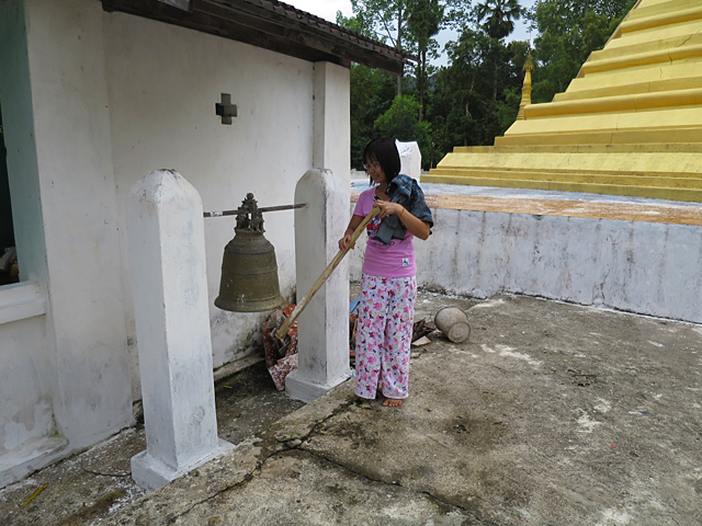 山門を入った正面が僧房のような建物なので、ここは参詣用の寺ではなく、修行のための寺である。ミャンマーの寺には、いろいろなタイプがあり、物見遊山的な観光寺院もあるが、その他に、学校の役割を持った寺や、修行のための寺、在家信者が瞑想するための寺などもある。