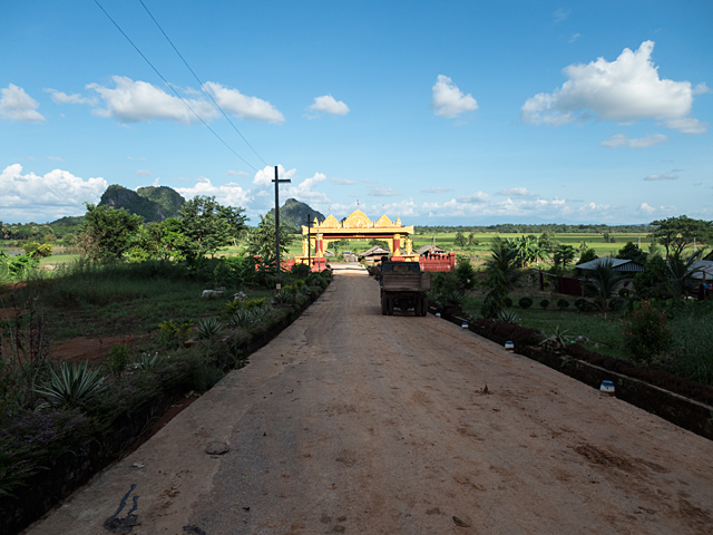 マイカンユゥ洞窟寺から下山し、再びミャインジーグー街道を進む。左手には屏風のような山脈が続く。