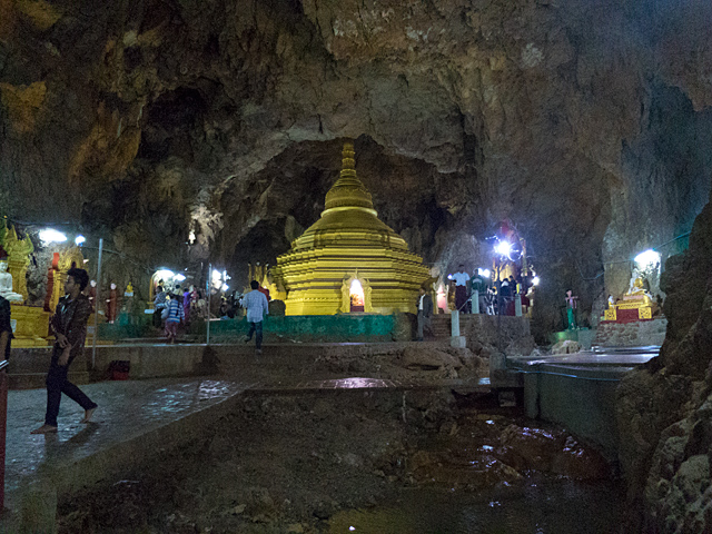 カレン州で見てきた洞窟寺院と違って、照明が行き届いており、足下もきれいに整地してあるので、楽々見学できる。