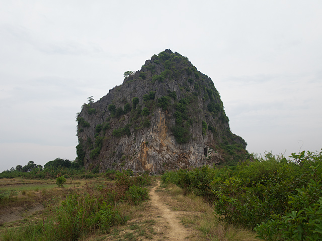 モンジャン洞窟寺を見たときにこの離れ山にも行こうと思ったのだが、道が見あたらず、あきらめたのだ。