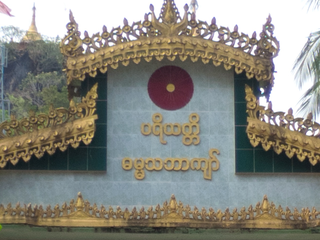 だが併記のビルマ語は(小さくて判読が難しいが)"သှေဟ်ကွီဓမ္မသ"のように見える。日本語で書くなら「タンマサー」でよさそうに思えるので、「タンマサー僧院」としておく。