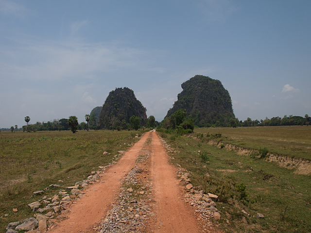 あまり期待せずに訊いてみたのだが、お坊さんはけっこう乗り気だ。乾き切ってデコボコの田んぼの中をお坊さんが走っていく。私はオートバイでハンドルを取られながらもなんとかお坊さんについていく。