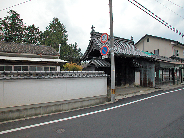 出雲街道に面して愛染寺のむかいに薬医門があるが、これは裏門的なものである。妙法寺の伽藍は東面していて本来の山門も境内の東にある。