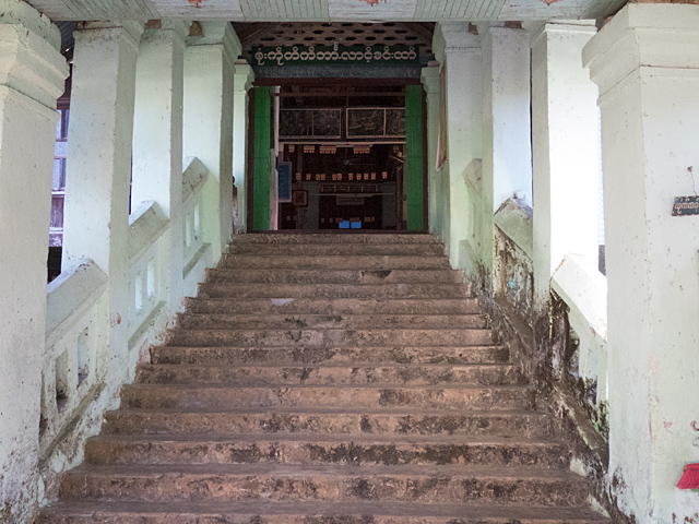 回廊を進むとモン様式の講堂が見えてきた。屋根の架構が木造で、これまで見てきた僧院よりも古めかしい感じがする。