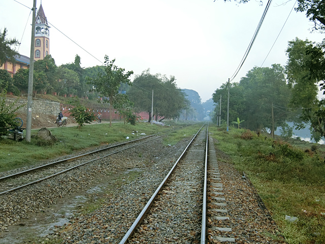 駅は城郭の南東角のわかりにくい場所にある。この路線はヤンゴンからネピドーを経て、マンダレーまで続いているミャンマーの幹線だ。
