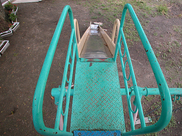言葉で言うと普通に聞こえるのだが、実際の組み合わせ方を見るとちょっと驚く。ブランコの大棟(?)をまたぐように滑り台が載っているのだ。