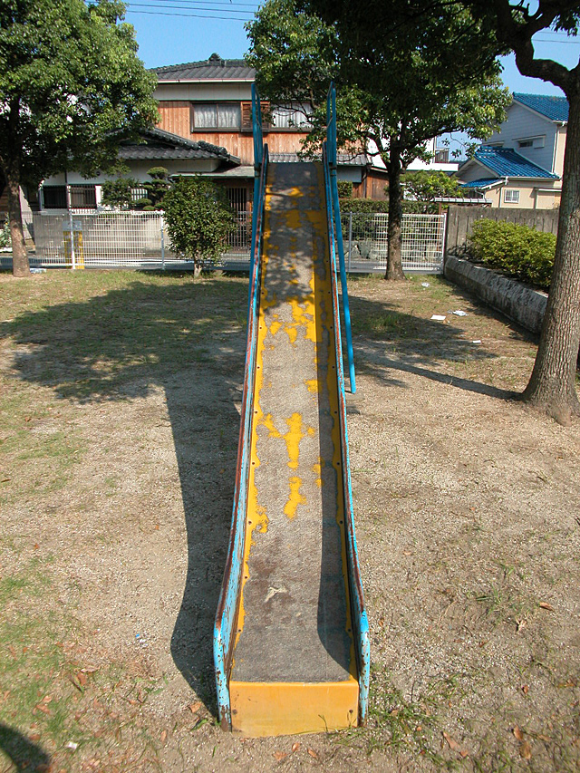 県営住宅、小松島団地の2号棟の前の公園にあった滑り台。