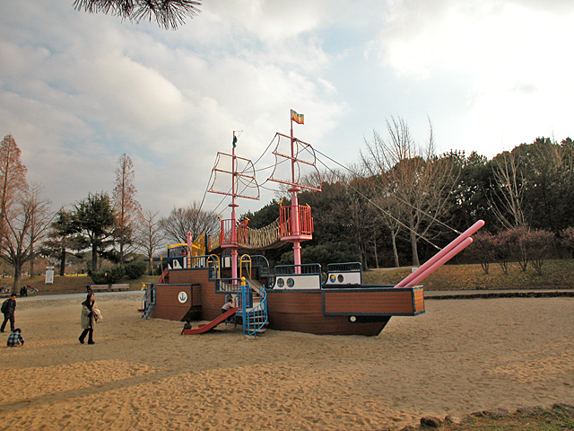 同エリアにあった帆船の遊具。申し訳程度には滑降部がついているので、一応撮影。