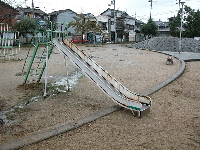 大きな砂場に滑り降りる配置も共通している。二番丁公園と設計者も同じなのか。