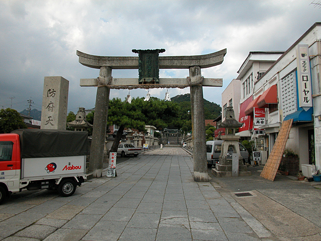 右手だけで運転し何とか防府市まで来たものの、また大きな神社である。気力を振り絞って境内へ向かう。