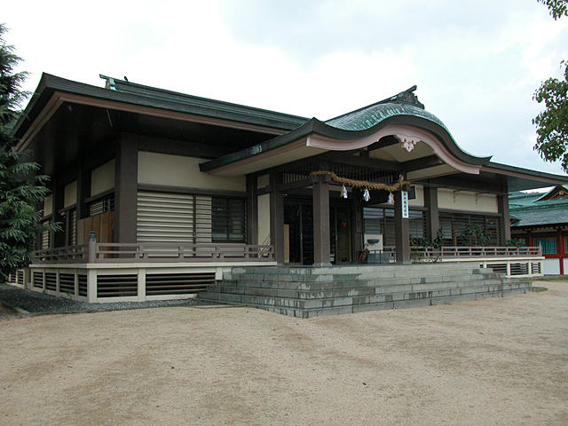 回廊の中へ入ると正面に入母屋平入りの拝殿がある。