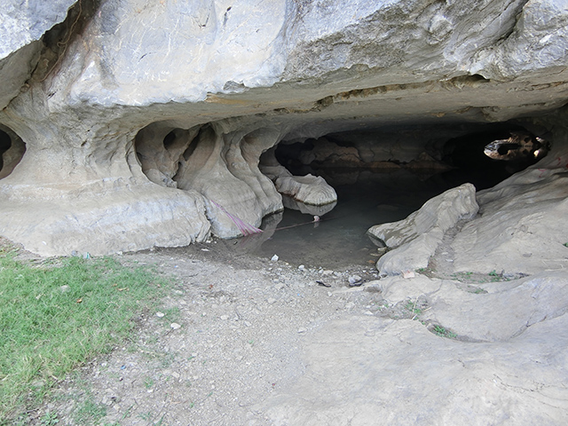 入口から5mくらいは壁にしがみついて入れるが、その先へ行こうと思うと、腰くらいの深さまで水に入らなければならない。