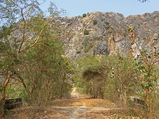 だが崖は荒々しい石灰岩の露頭になっているだけで、洞窟はみあたらなかった。パゴダなどもない。