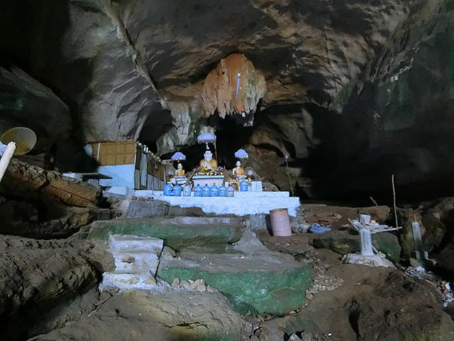 天井の鍾乳石がまるで天蓋みたいになっているのを利用して須弥壇が作られていた。