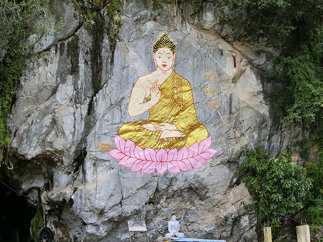 洞窟の横の崖に、壁画が描かれていた。壁画の高さは6mくらいか。