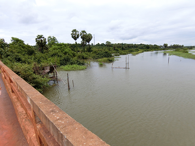 雨季で増水していて、川幅がかなり広がっている。本来は田んぼだったところまでが水没していた。