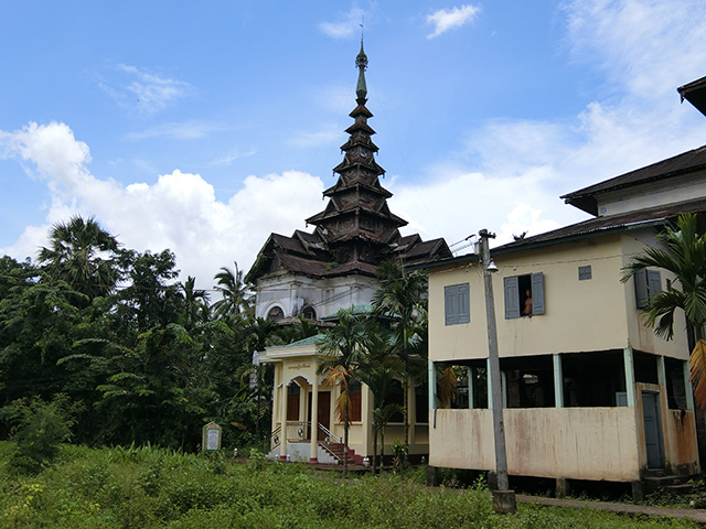 日本人から見ると「風情があって良い風景だな」と思うが、ミャンマーではパゴダは苔むす前にペンキを塗り替えるのが普通で、このように古びさせることが決して良いことではないはずだ。