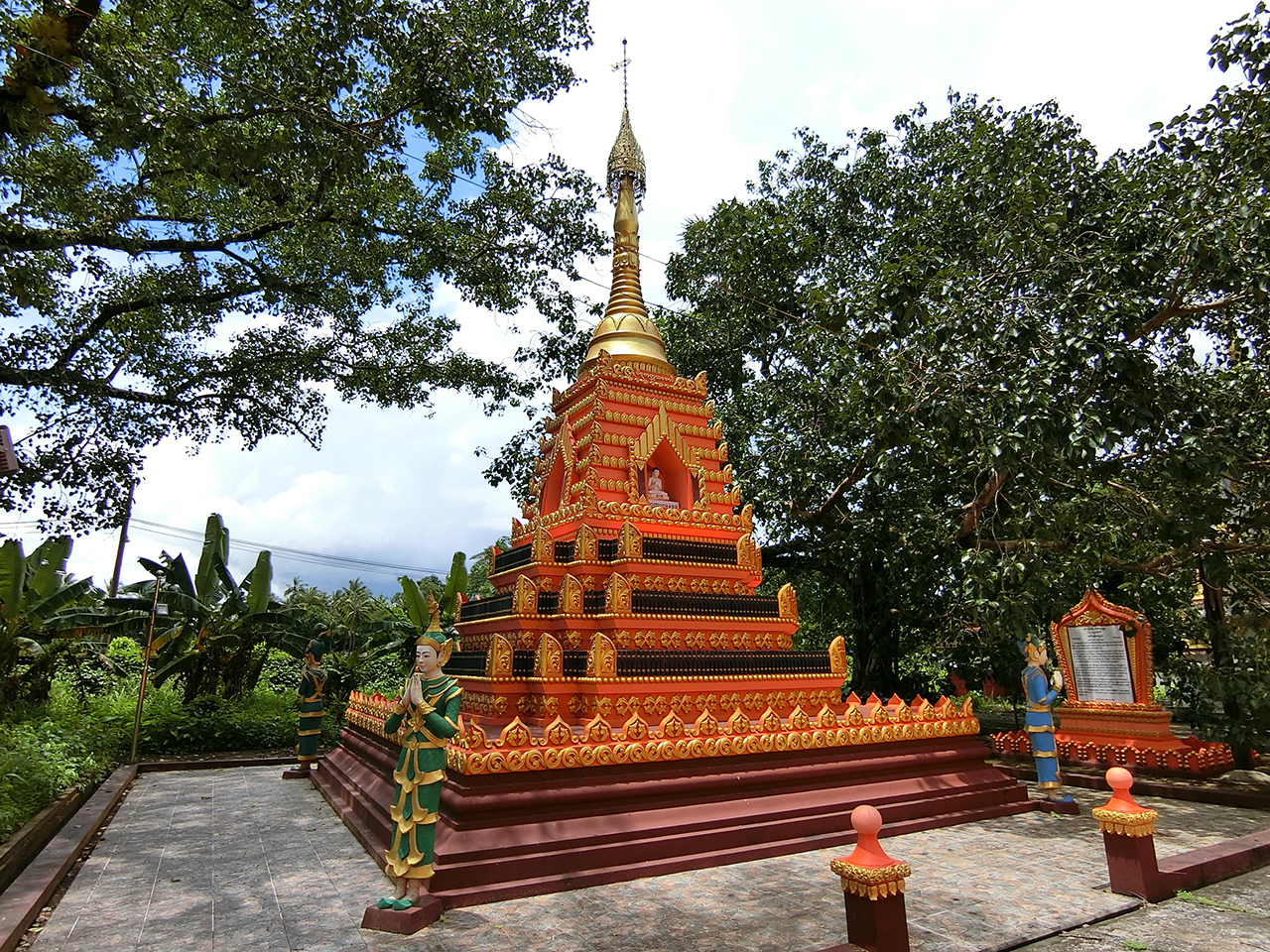 円柱パゴダの横には金赤で仏龕が無数に貼り付けてある四角錐型のパゴダがある。