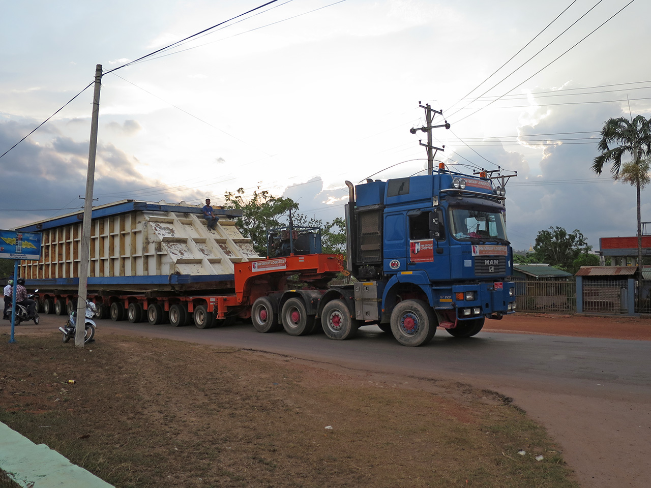 もし経路に低い電線がある場合は、ドライバーに加えて、電線持ち上げ係も雇わなければならないというのが、ミャンマーの物流の常識なのだ。