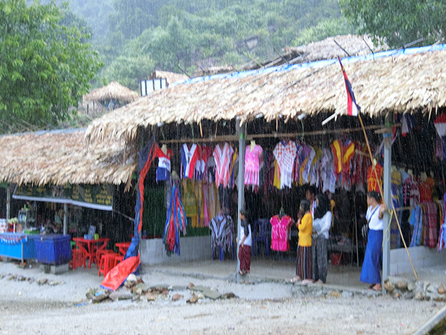 さらに途中で道路が舗装工事のために通行止めになっていて、泥沼みたいな道を迂回させられて、えらく時間をロス。ナッミャウ村の船着き場についたときには、薄暗くなっているうえに土砂降りの雨。
