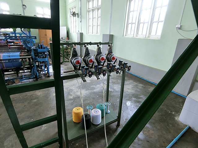 構内には寮もあるので、田舎から出てきてここで住み込んで機織りを学べるのである。