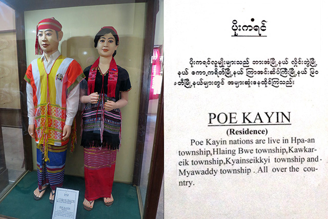 内部は2階建てでけっこう広く、カレン州の自然、カレン民族の種類、文字、楽器、織物、民具、民間信仰、仏像、美術など幅広い展示物がある。