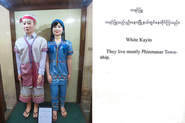 続いて、広義のカレン族のうち、カレン州に居住する詳細部族の解説展示がある。マネキンは12組あった。