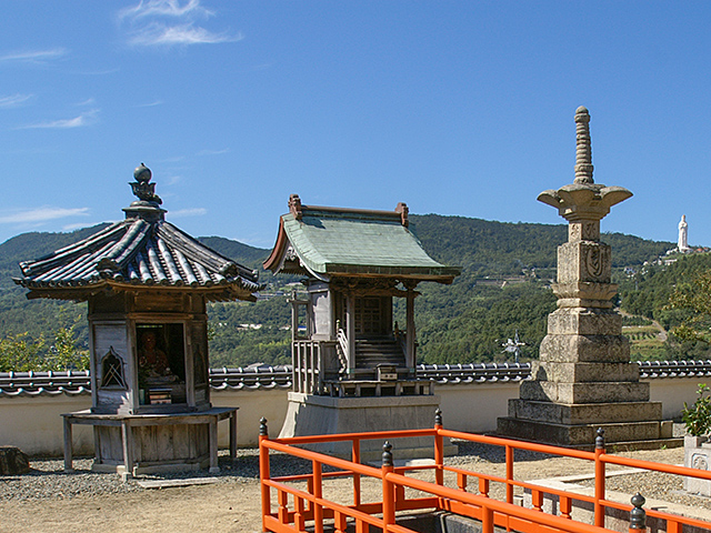 方丈の前には、六角堂、鎮守社、宝篋印塔がある。