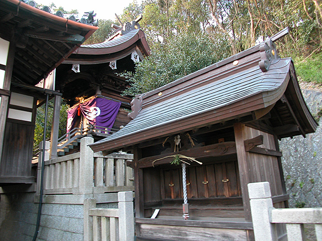 本殿の左側には何か建物が接合している。神饌所ではないかという感じでもあるがはっきりしない。