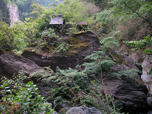 滝つぼには小さな祠が2つ祀られている。