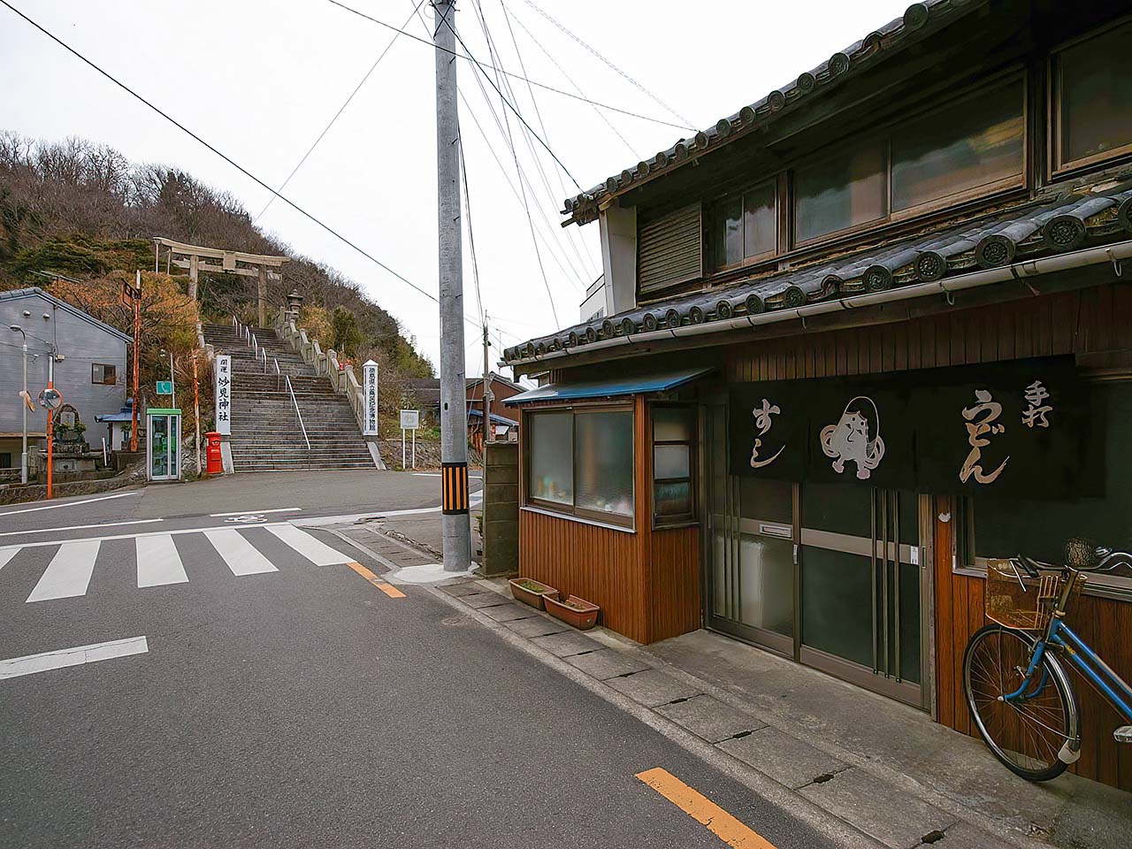 鳴門市街地から文明橋で撫養川を渡ると、古い街道を思わせる町並みが続く。