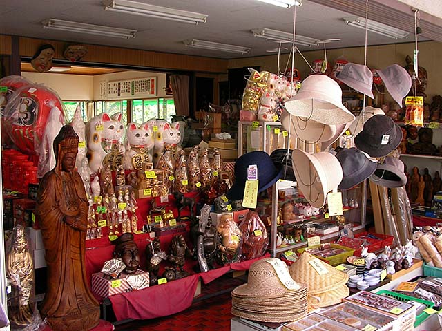 品揃えは日よけの帽子などまさに参道入口の土産物屋としてよく工夫された内容。